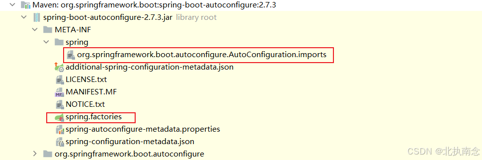 SpringBoot程序在启动时会自动加载 META-INF/spring.factories 文件 和 META-INF/spring/org.springframework.boot.autoconfigure.AutoConfiguration.imports 文件,并导入其中定义的所有配置类。
