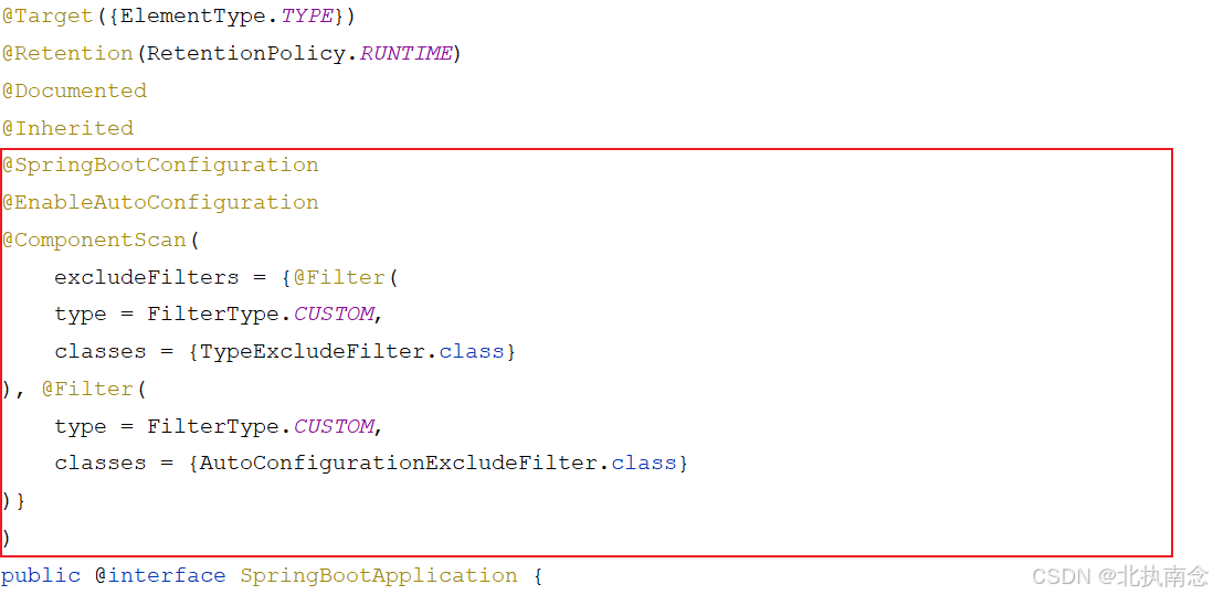 @SpringBootApplication注解生效,该注解由三个注解组成