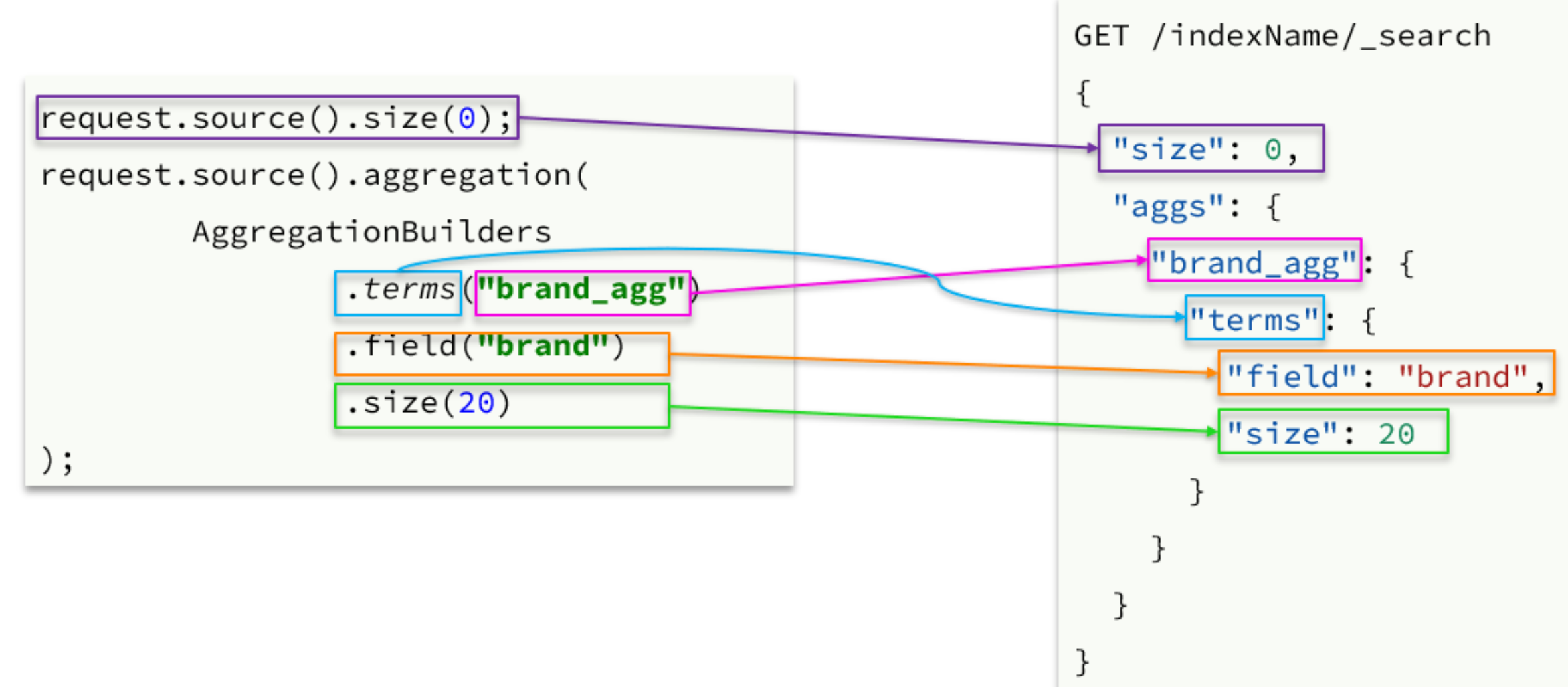 aggs聚合条件与query条件是同一级别,都属于查询JSON参数。因此依然是利用request.source()方法来设置。不过聚合条件的要利用