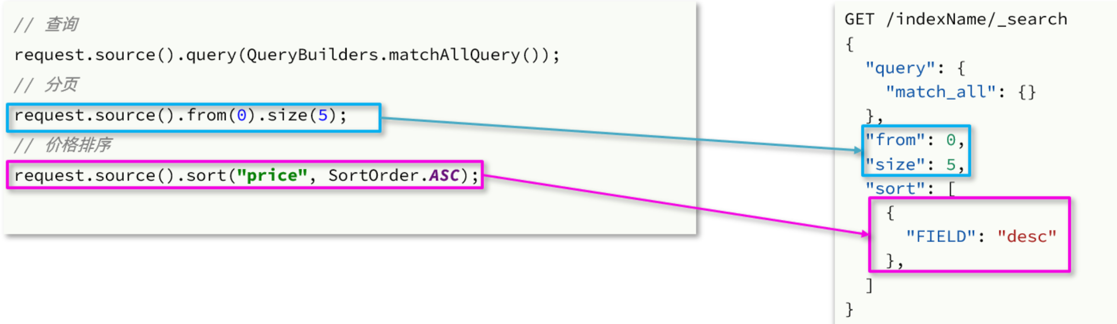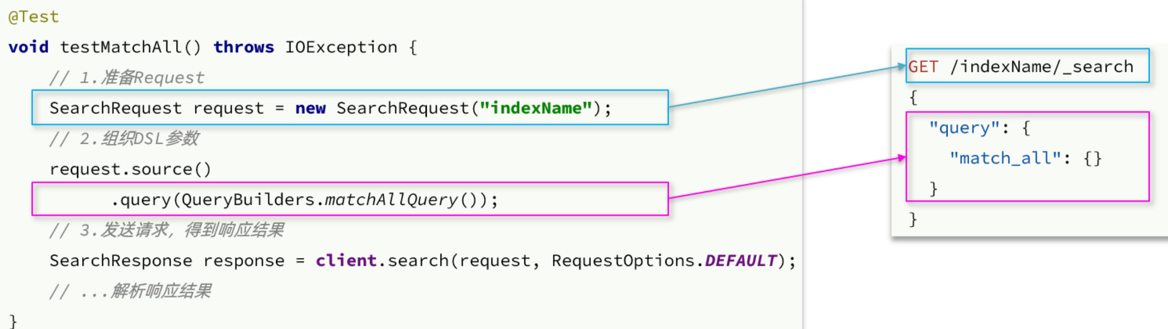 因此,我们先学习DSL的查询语法,然后再基于DSL来对照学习JavaAPI。