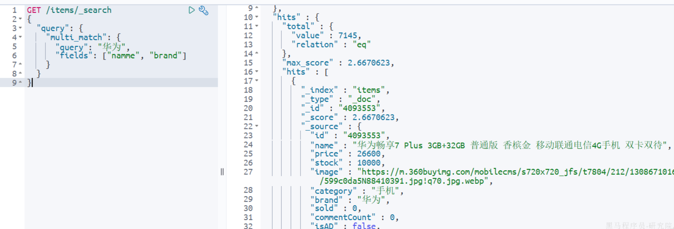 name和brand两个字段中搜索"华为"(2)精确查询