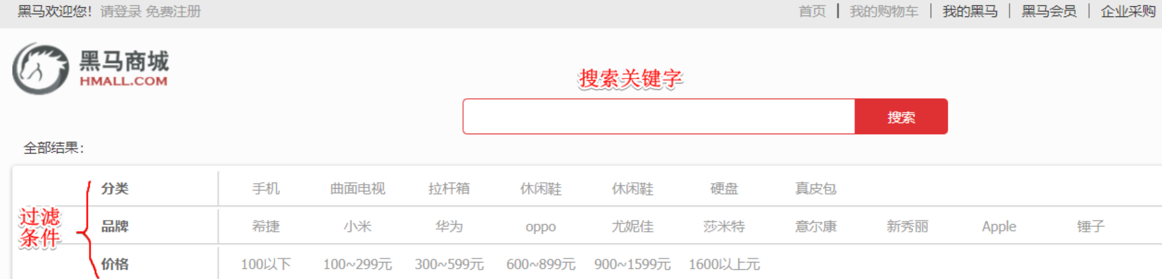 例如黑马商城的搜索页面: