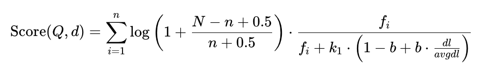 从elasticsearch5.1开始,采用的相关性打分算法是BM25算法,公式如下: