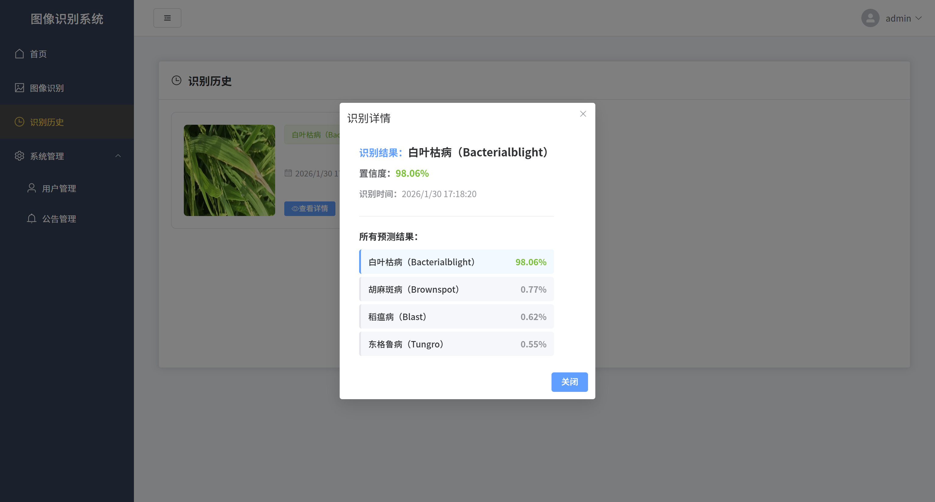 水稻病害识别系统是一款基于深度学习技术的智能农业辅助工具,旨在帮助农民和农业技术人员快速、准确地识别水稻常见病害。系统支持识别四种主要水稻病害:白叶枯病(Bacterial blight)、稻瘟病(Blast)、胡麻斑病(Brown spot)和东格鲁病(Tungro)。