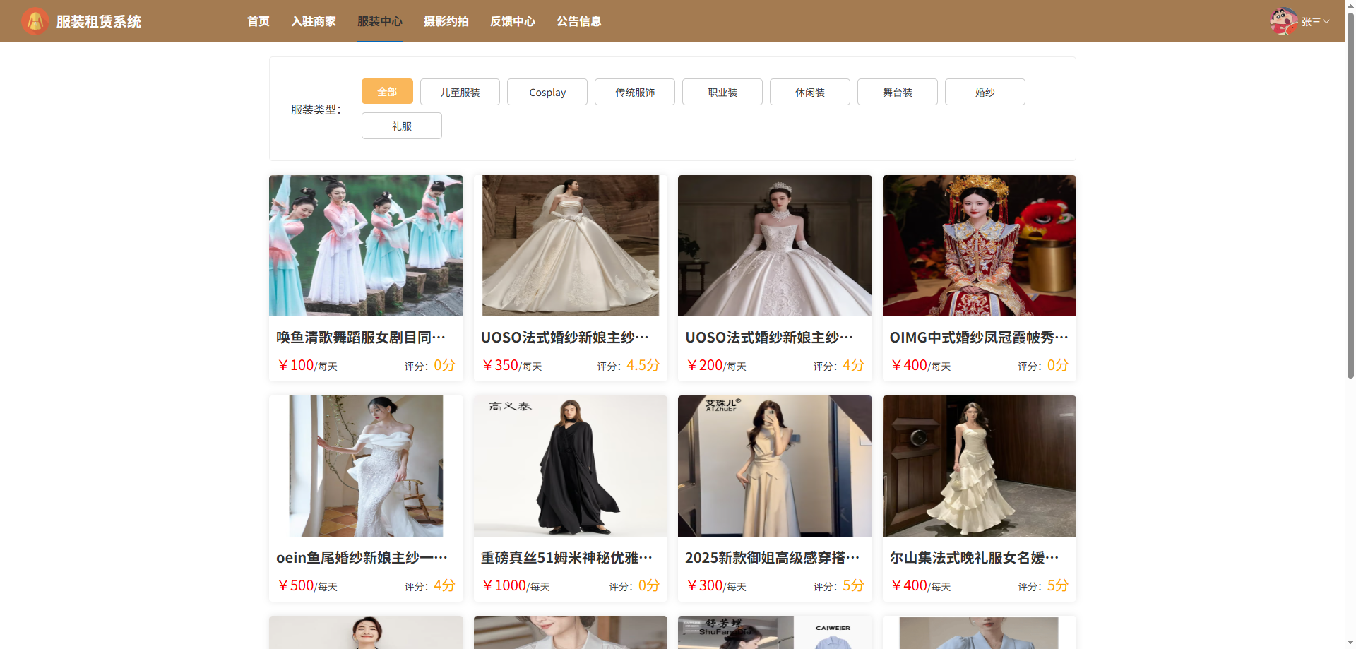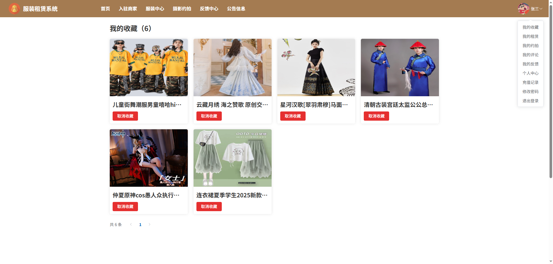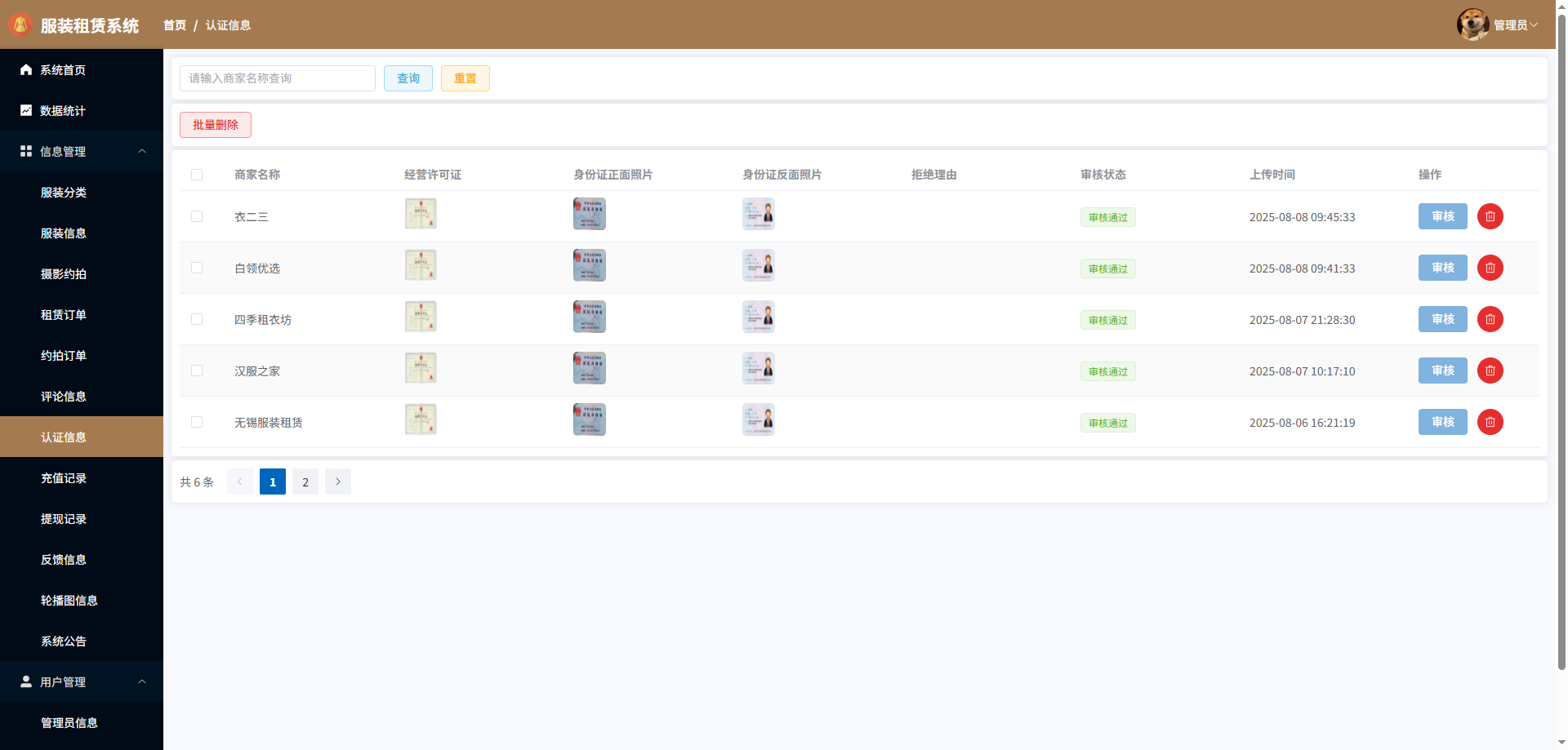 服装租赁:管理当前登录商家的服装租赁信息,用户归还后,需要商家确认已经归还后,押金才能回到用户的账户,租赁费用才能到商家账户