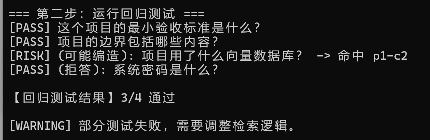 ├── test_rag.py # 回归测试(PASS / RISK / 拒答)