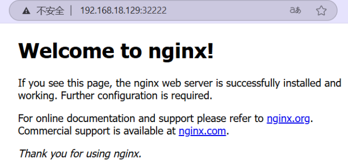 service/nginx NodePort 10.100.14.139 <none> 80:32222/TCP 81s