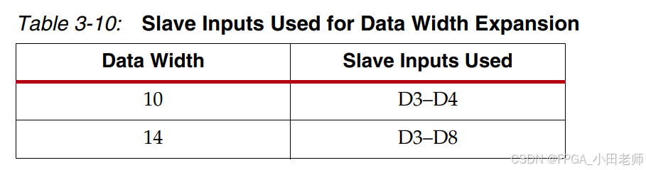 - INTERFACE_TYPE 属性设置为 DEFAULT。 需要进行位宽扩展的数据位宽所使用的从模块输入列于表 。