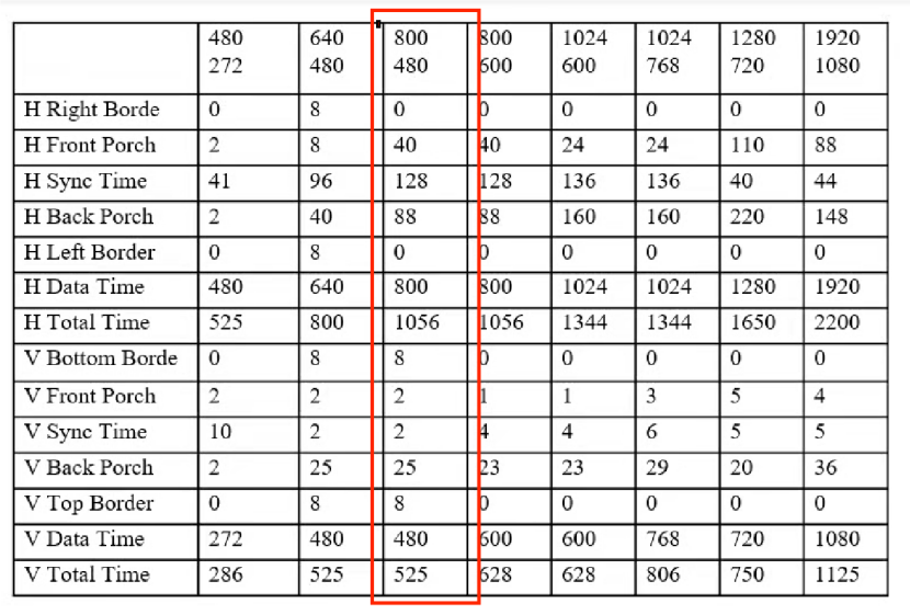 低脉冲时间:实测3.84μs,计算得3840/30=128个时钟周期,与800×480时序参数表中