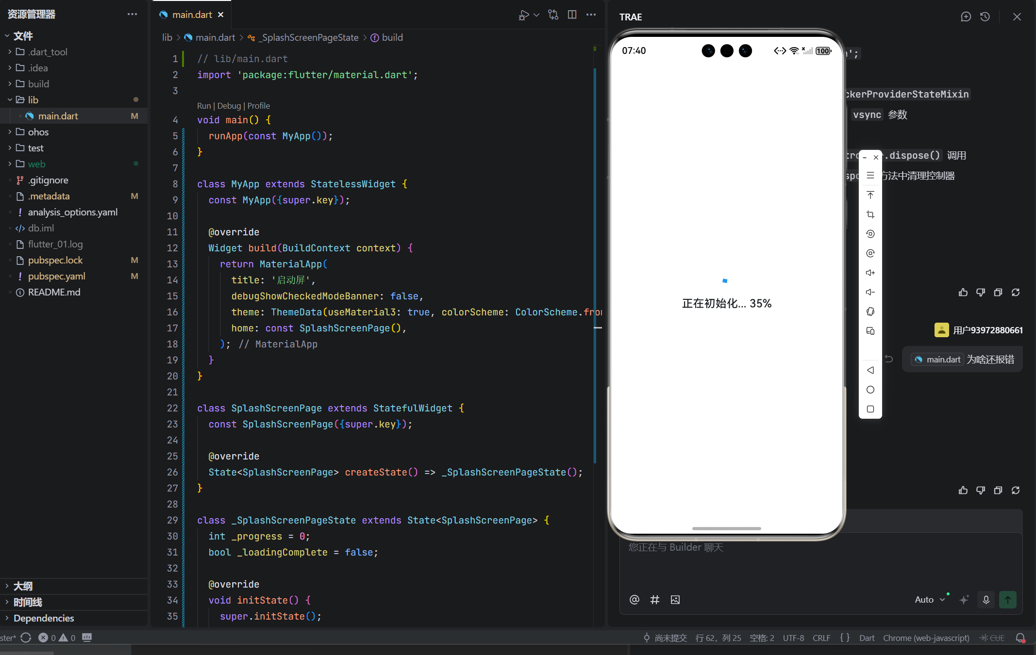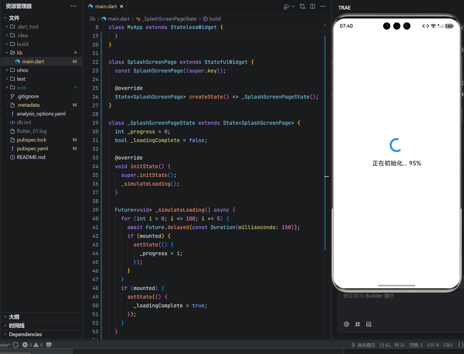 启动屏的本质是用 UI 反馈掩盖后台耗时操作 。在 Flutter 中,这通过 Future 与 setState 协同实现。