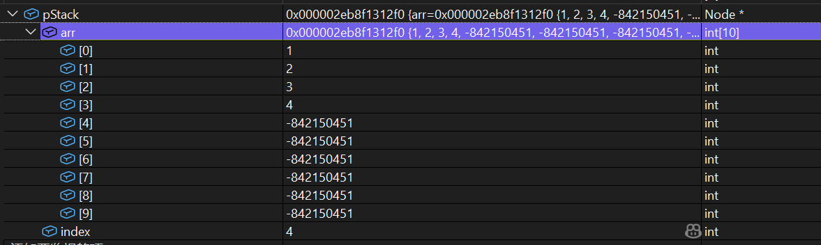 a存入栈顶位置pStack->arr[pStack->index]。 -