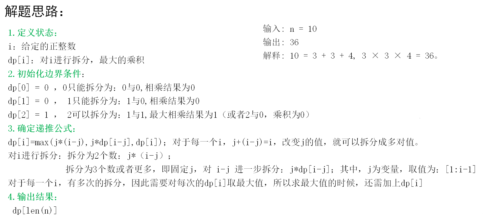 //1.定义状态. i:给定的正整数; dp[i]:对i进行拆分,最大的乘机
