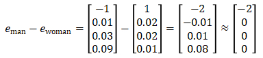 - 如何将这种思想写成算法。我们的问题是已知man对应woman,找到king对应什么,假设king对应的是w,根据我们的减法思想,就是要使e_man-e-woman=e_king-e_w,交换一下位置就是e_w=e_king-e_man+e_woman。
