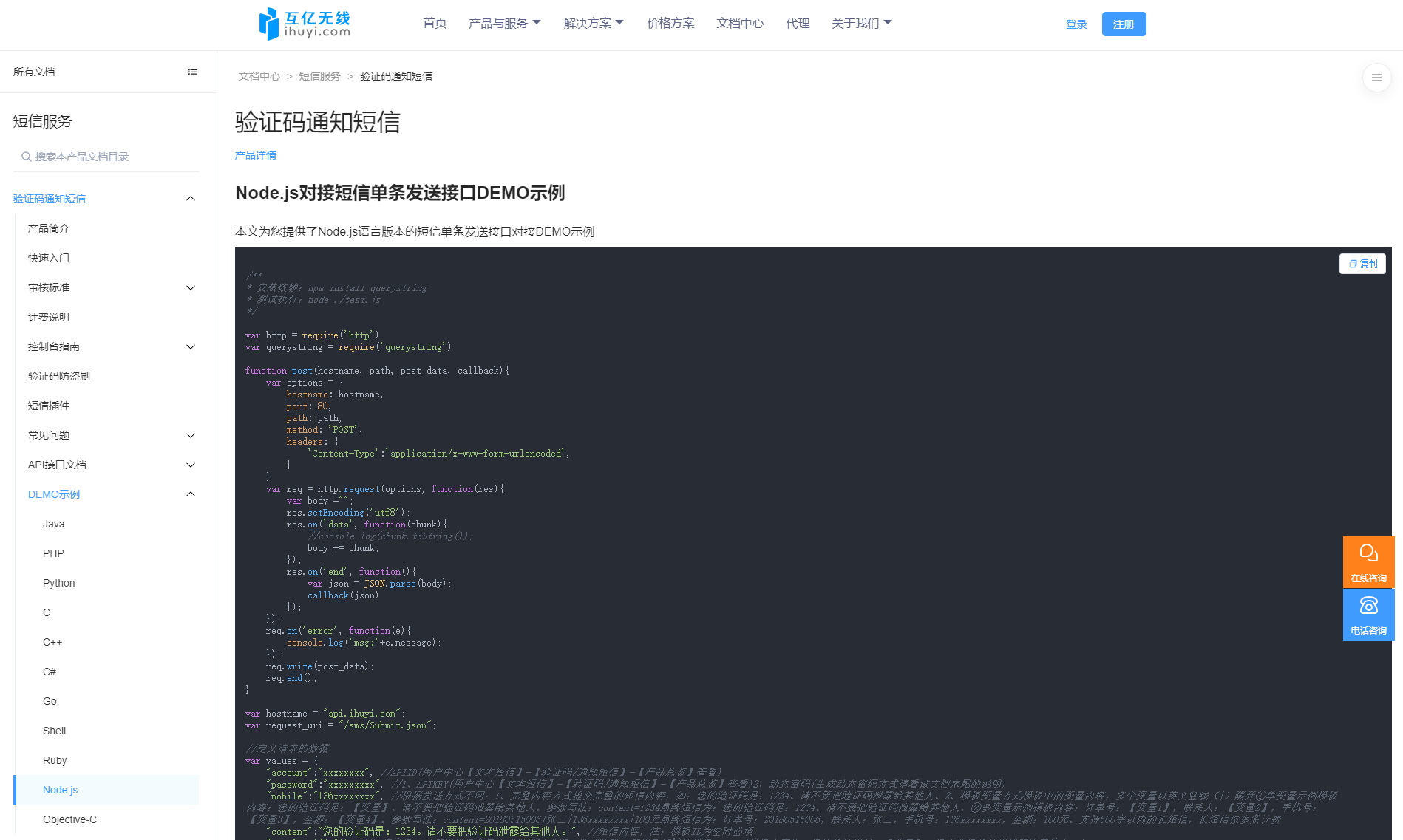 完成前置准备后,进入核心的接口开发对接阶段,本章节以实际的HTTP接口为例,结合全栈开发者常用的JavaScript(Node.js)、Python技术栈,提供可直接复用的实战代码,同时解析参数配置与响应处理的核心要点。以互亿无线的企业短信接口为例,其提供了标准化的HTTPS接口,支持全天24小时调用,适配前端服务端调用、后端系统集成等多种开发场景。