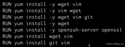 指令少时(7-8个):考虑每个RUN指令指定yum 命令