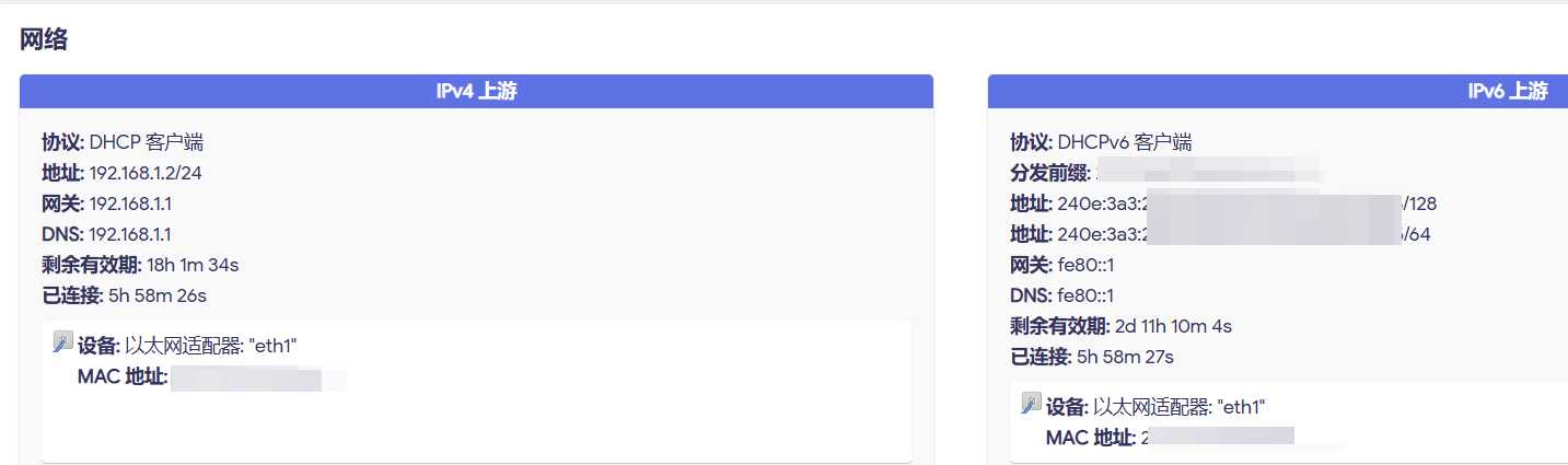 检查 iStoreOS/OpenWrt WAN 口 :确认其通过 DHCPv6 协议获取到了电信的公网 IPv6 地址(