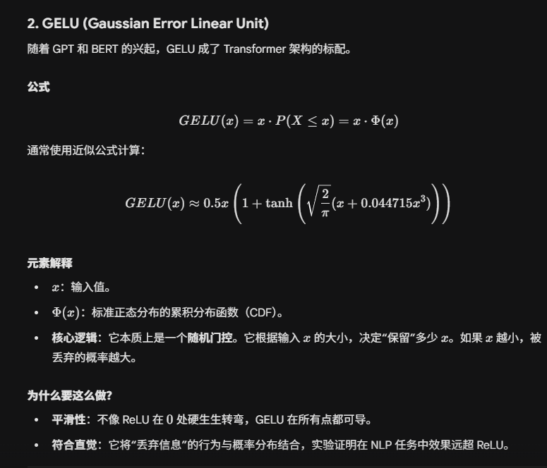 GELU ( x ) = x ⋅ Φ ( x ) \text{GELU}(x) = x \cdot \Phi(x) GELU(x)=x⋅Φ(x);
