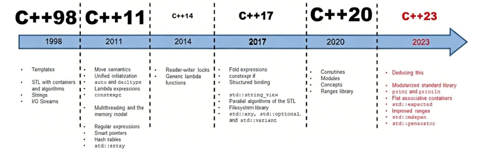 C++11 是 C++ 语言的第二个主要版本,也是自 C++98以来最重要的更新。这次更新不仅引入了大量新特性,还标准化了现有实践,并显著提升了 C++ 程序员的开发效率。在 2011 年 8 月 12日被 ISO 正式采纳前,它曾被称为"C++0x",因为原本预计会在 2010 年前发布。从 C++03 到 C++11 历经了 8年时间,这是迄今为止最长的版本间隔。此后,C++ 开始保持每三年一次的规律性更新。
