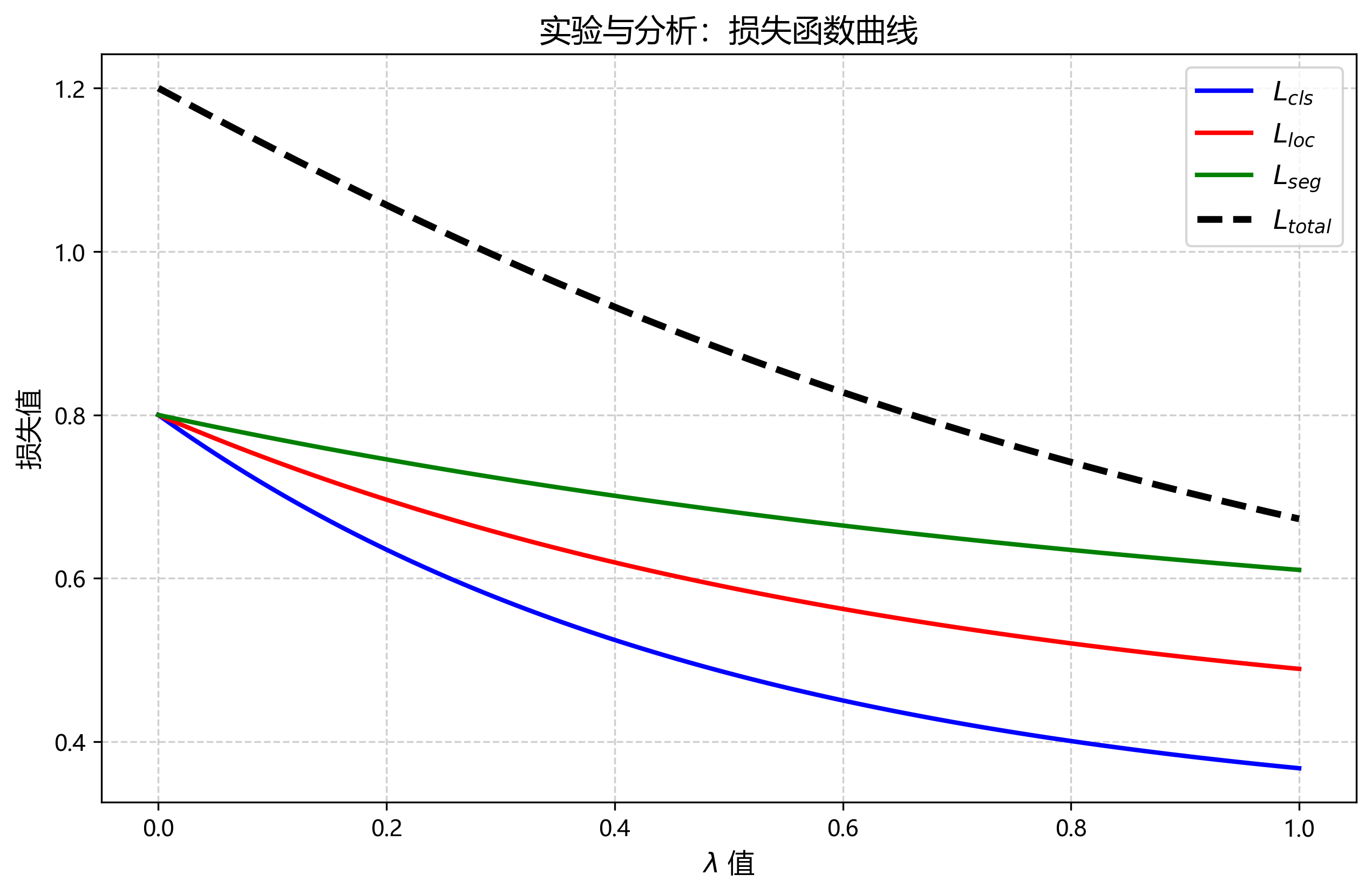 这种多任务损失函数的设计使得模型能够在训练过程中同时优化分类、定位和分割三个任务,相互促进,提高整体性能。