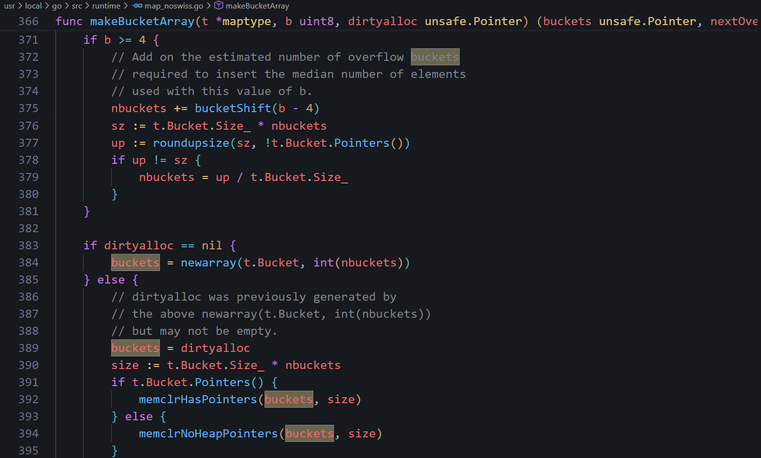 oldbuckets unsafe.Pointer // 是一个指向buckets数组的指针,在扩容时,oldbuckets 指向老的buckets数组,非扩容时,oldbuckets 为空