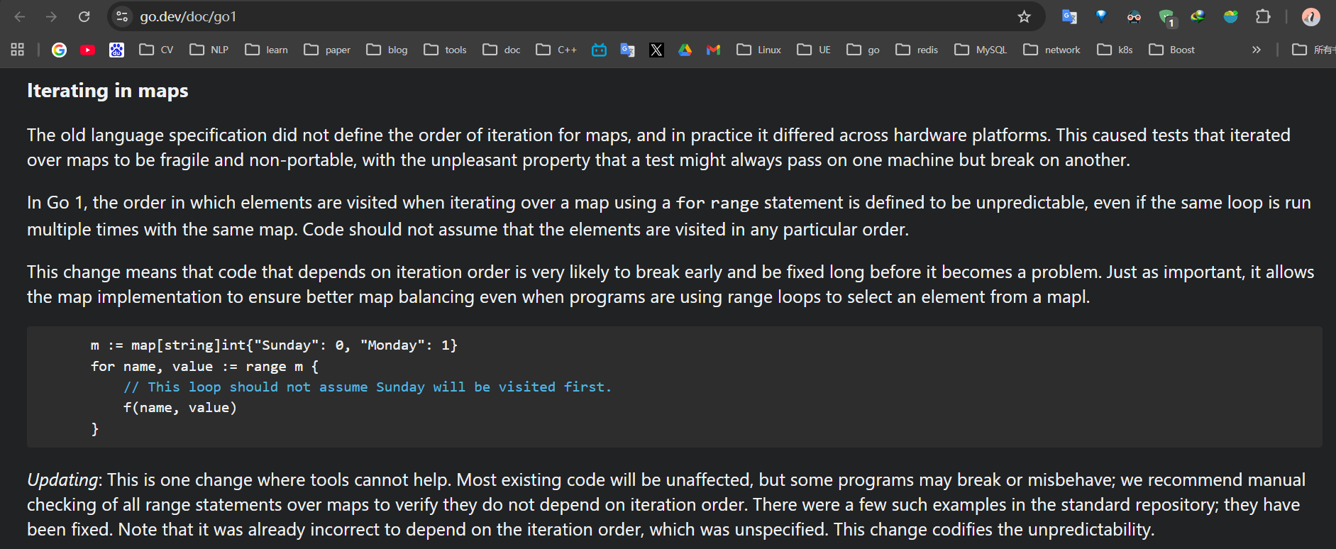 map的遍历是无序的,map每次遍历,都会从一个随机值序号的桶,在每个桶中,再从按照之前选定随机槽位开始遍历,所以是无序的。