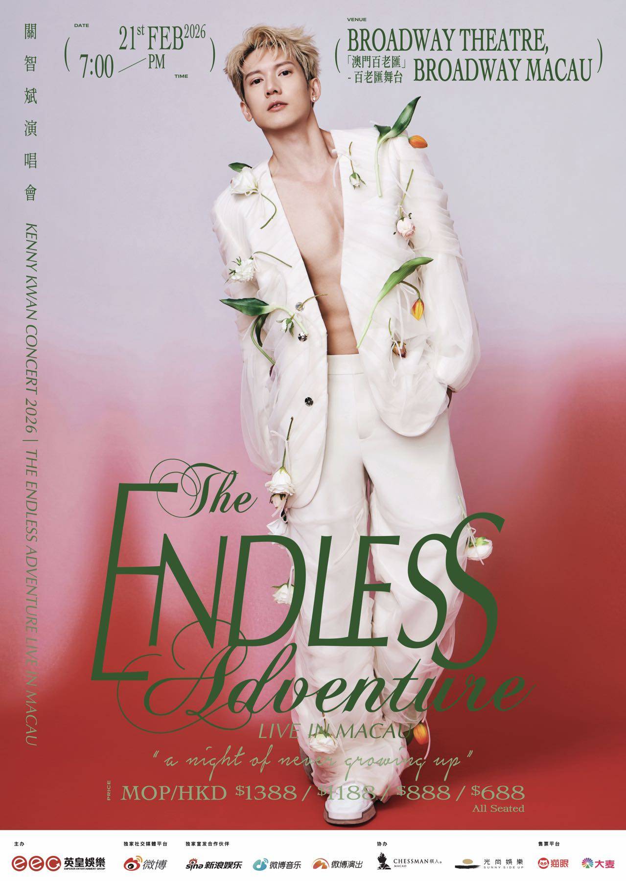 2026年2月21日,澳门百老汇舞台将迎来一场名为《The Endless Adventure Live》的音乐盛宴。这是关智斌献给所有不愿长大的"孩子们"的新年礼物。出道二十余载的关智斌,始终在音乐的冒险旅程中前行。从2003年以Boy'z组合身份正式踏入乐坛开始,这位被粉丝亲切称为"Kenny"的艺人经历了从组合偶像到独立歌手,再到跨界演员的多重转变。当年那个凭借《死性不改》一曲成名的青涩少年,如今已成长为舞台上游刃有余的全能艺人。这次澳门演唱会主题"The Endless Adventure"恰如关智斌艺术生涯的写照。他曾在采访中坦言:"我每一个时期的作品都跟当时的年纪比较挂钩。"从青春懵懂到成熟思考,他的音乐始终伴随着歌迷一起成长。2026年的澳门之约,将是这场无尽冒险中又一重要驿站。