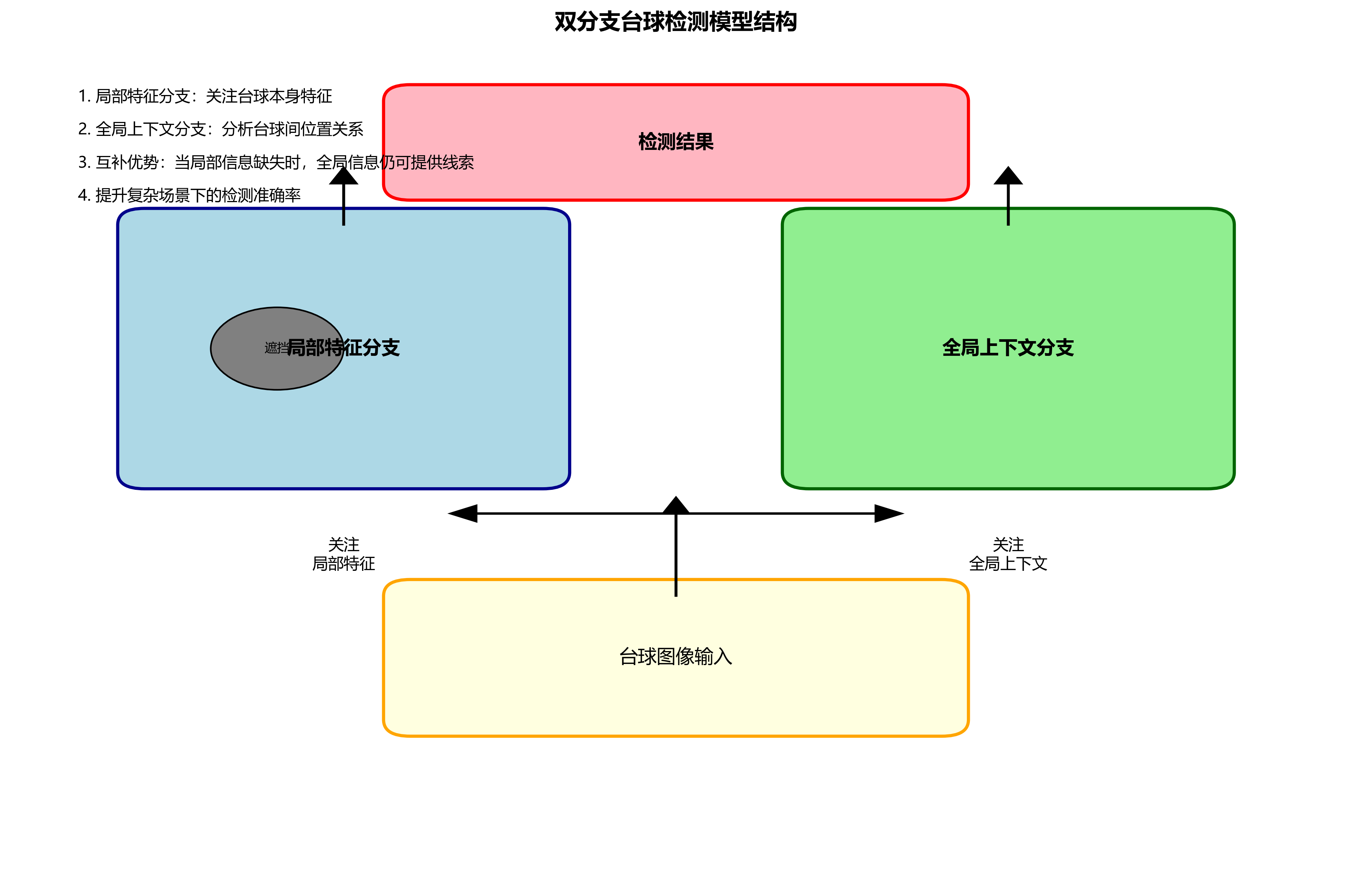 这种双分支设计的优势在于它能够同时关注台球的局部特征和全局上下文。例如,当台球部分被遮挡时,局部特征分支可能无法获取完整的球面信息,但全局上下文分支仍可以通过周围台球的位置关系推断出被遮挡台球的可能位置。这种互补性使得模型在各种复杂场景下都能保持较高的检测准确率。