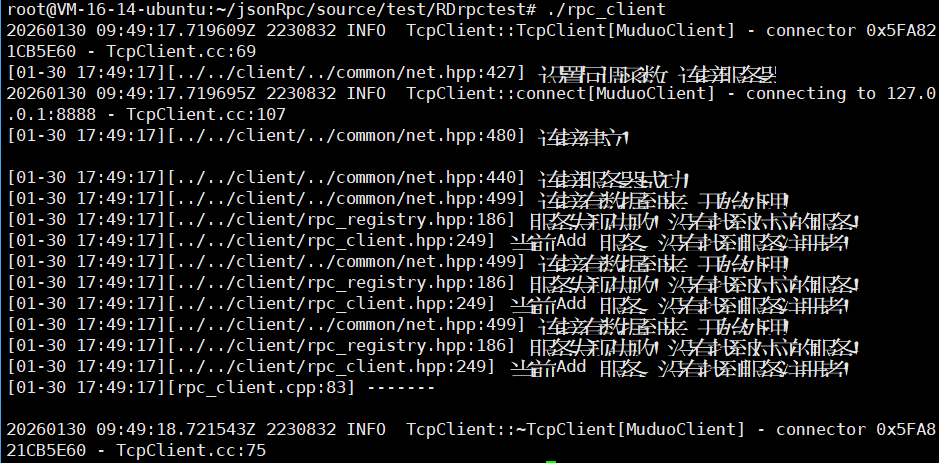 接下来我们终止我们的RPC服务端,再次启动一个新的RPC客户端,那么就是下面这个情况