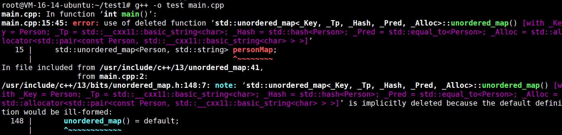 当我们想用自定义的结构体作为 unordered_map 的键时,直接使用会报错: