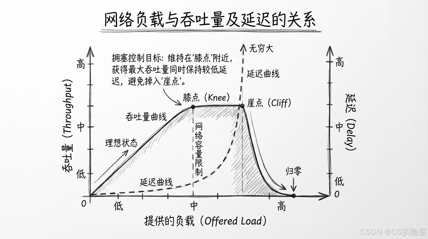 理解拥塞控制,关键在于理解"延迟"与"吞吐量"的权衡,以及如何通过反馈机制防止网络进入"崖点"后的崩溃状态。