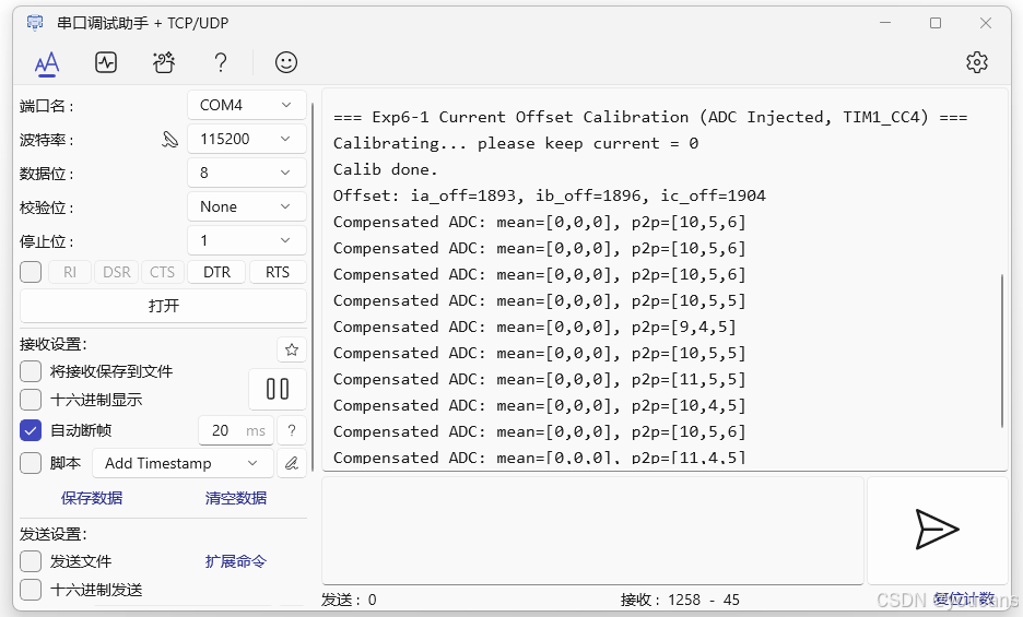 - 本实验得到的 iabc_off 是后续所有电流相关计算的"基础校正参数"。在后续实验以及电流环控制中,必须在每次采样后执行偏置补偿(推荐直接在 JEOC 回调中处理):