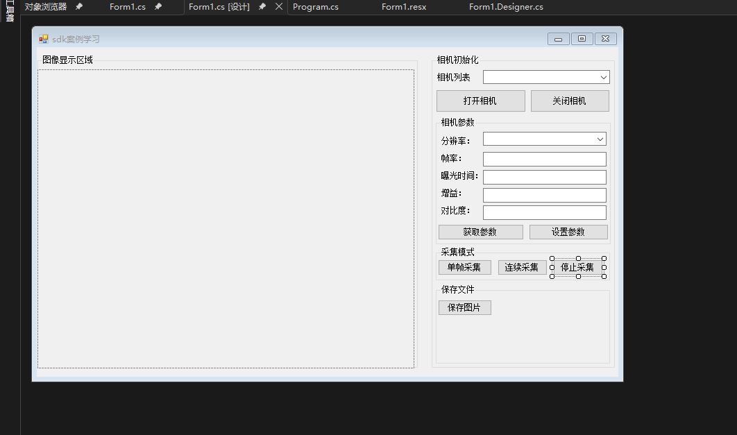 comboxk控件主要是显示相机分辨率,本来也是想进行分辨率设置,但是相机分辨率设置会影响到帧率参数,高的分辨率不能够支持高的帧率。参数设置还是建议使用官方sdk直接设置好。