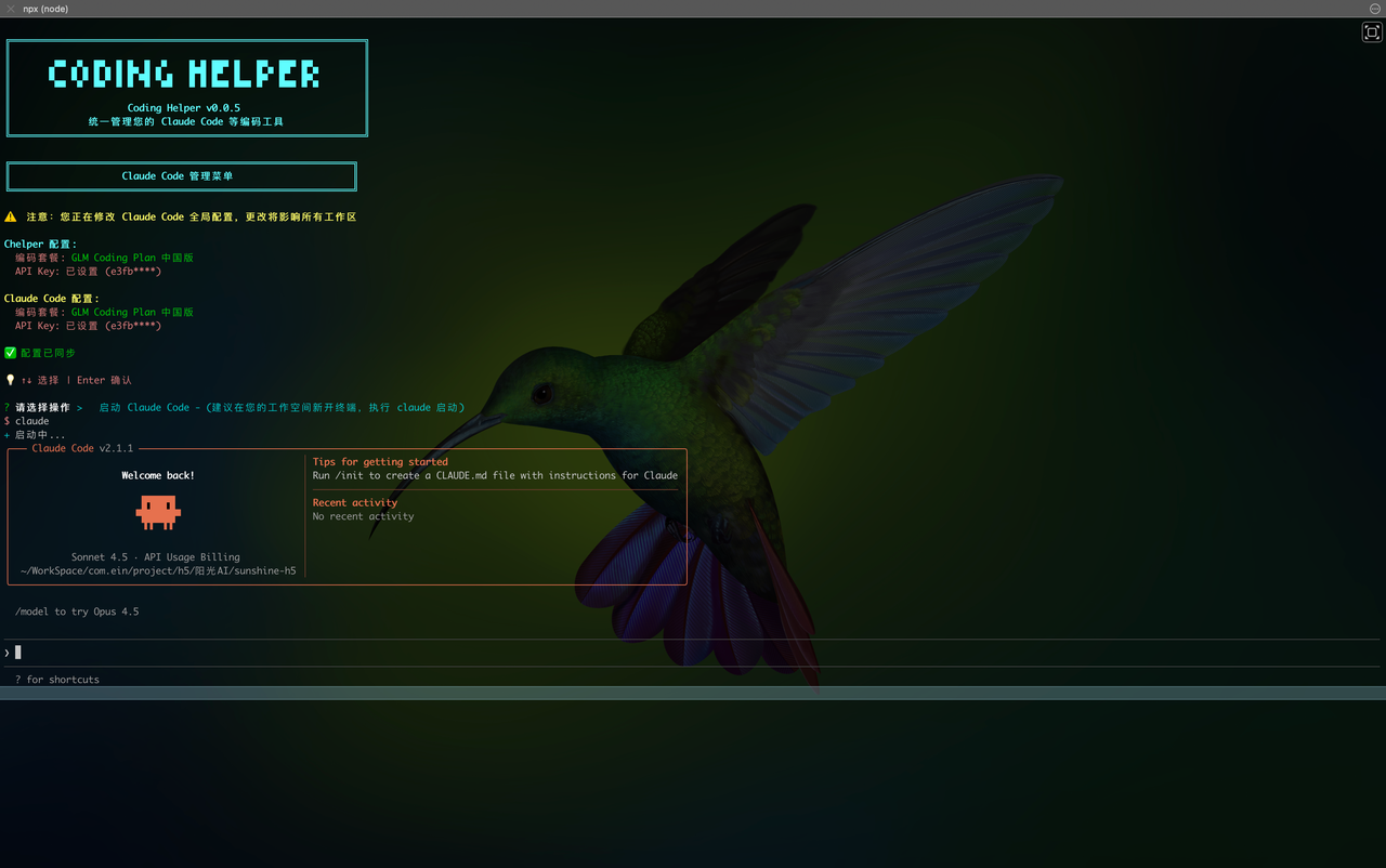 npx @z_ai/coding-helper