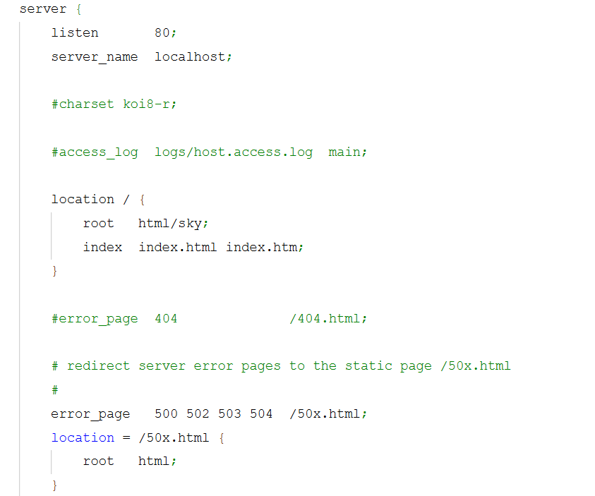 决定了 Nginx 如何启动、监听哪些端口、如何处理请求、是否做反向代理、负载均衡、缓存等