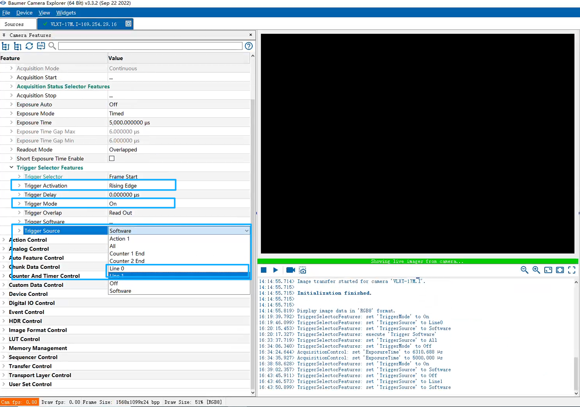 camera.f.TriggerSource.Value = NeoAPI.TriggerSource.Line0; // 设置相机触发源为Line0