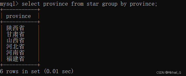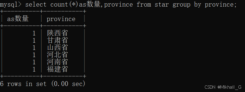 语法:select count(字段名), 字段名 from 数据表名 group by 字段名;
