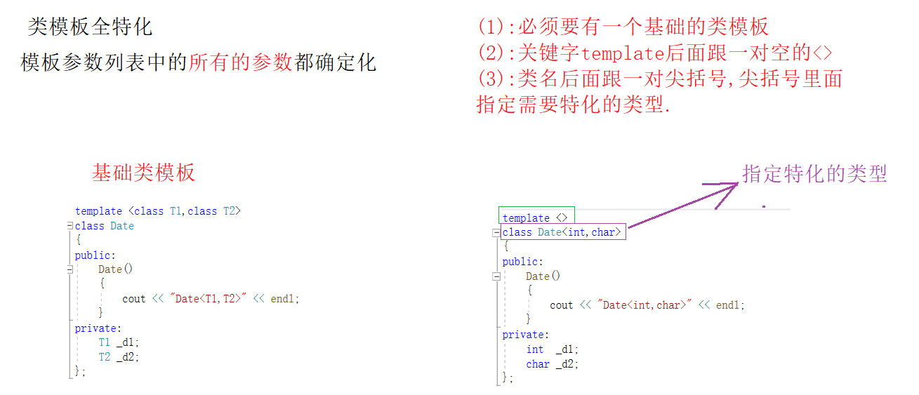 此时,就需要对模板进行特化****。即: 在原模板类的基础上,针对特殊类型所进行特殊化的实现方式。模板特化中分为函数模板特化与类模板特化.