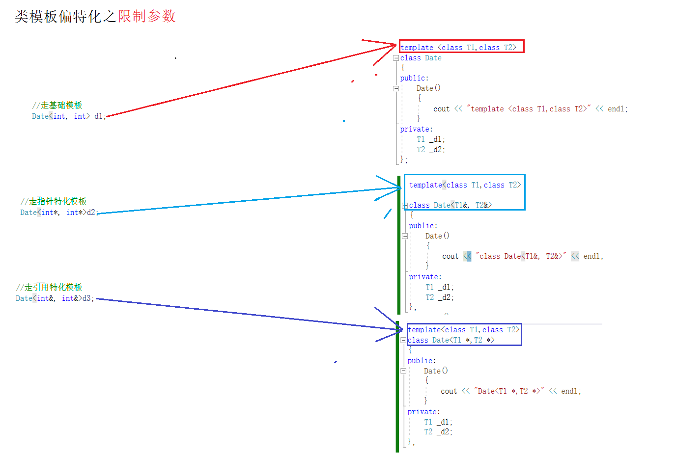 偏特化并不仅仅是指特化部分参数,而是针对模板参数更进一步的条件限制所设计出来的一个特化版本。
