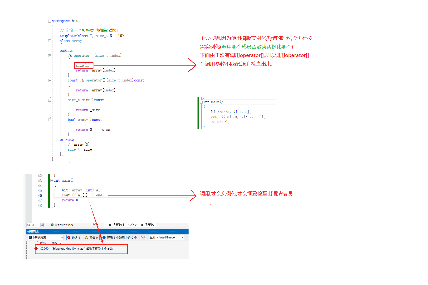- 出现模板编译错误时,错误信息会十分凌乱,不容易定位错误.