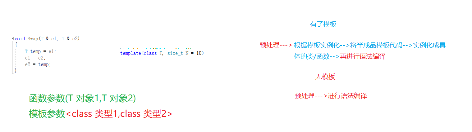 - 函数形参表:必须要和模板函数的基础参数类型完全相同, 如果不同,编译器可能会发生报错.