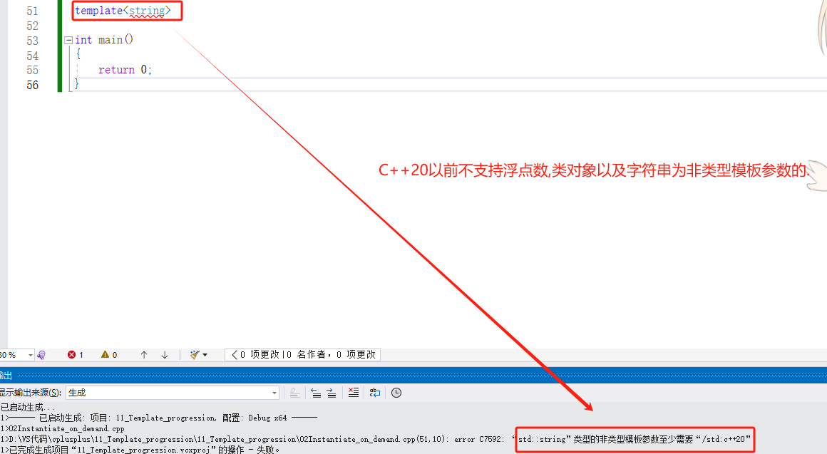 - 浮点数,类对象以及字符串时不能够作为非类型模板参数的.
