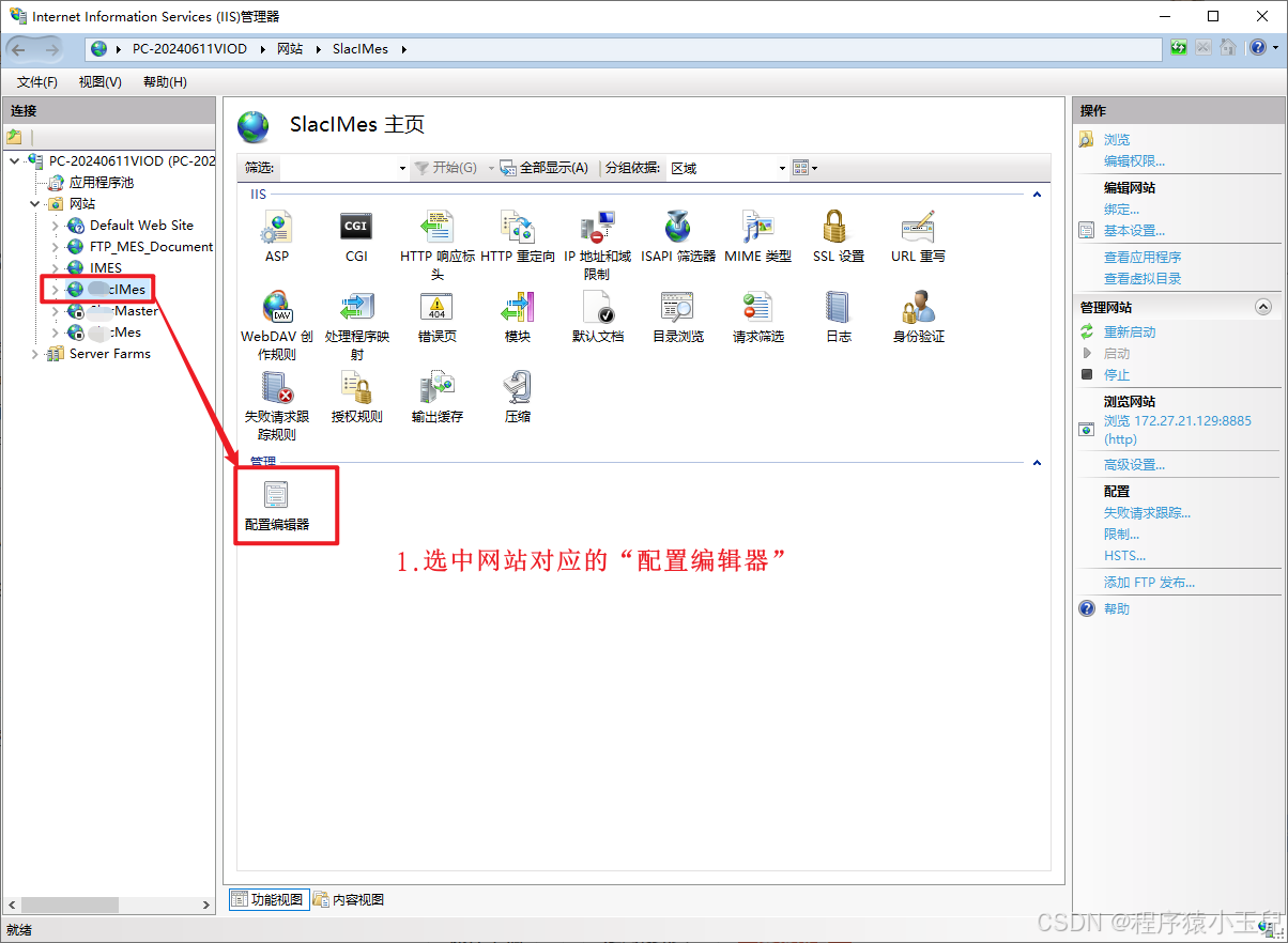 - 选中网站,双击对应的"配置编辑器"