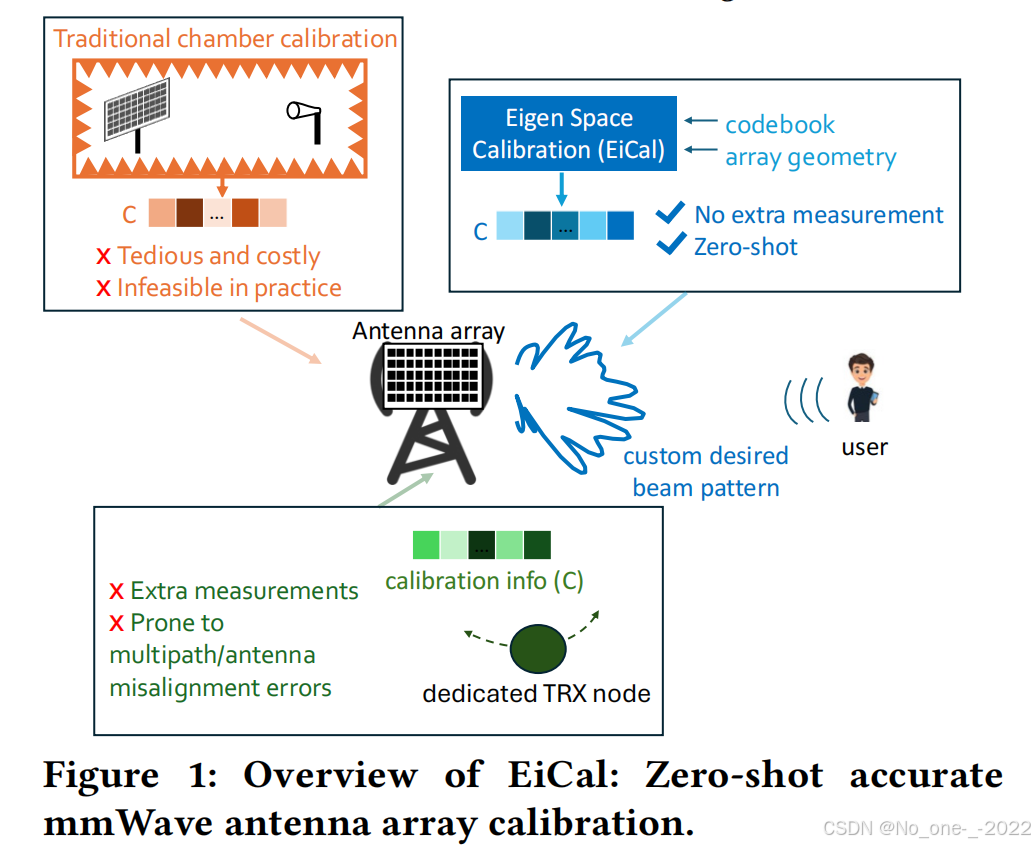 本文提出了 EiCal ,这是一种精确的零样本校准方案,它仅利用阵列几何结构的知识和制造商公开的定向码本,通过特征分析来获得精确的校准向量,而 无需额外的测量。