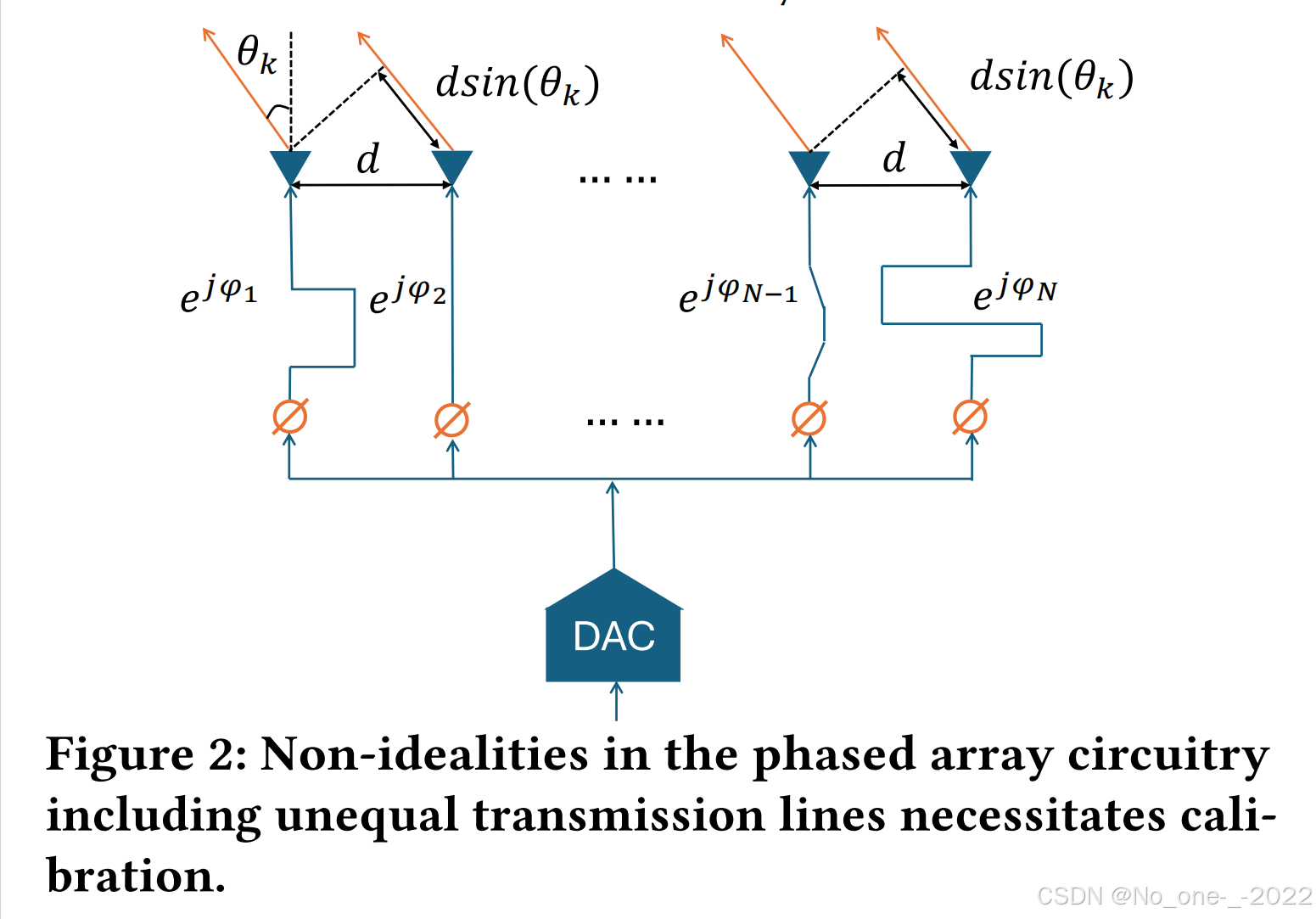 - 其次,电路中的缺陷(imperfections in the circuitry),例如(such as)不同天线与其对应的移相器之间的传输线长度不相等,会引入公式 ( 2 ) (2) (2) 中未考虑的额外相移。