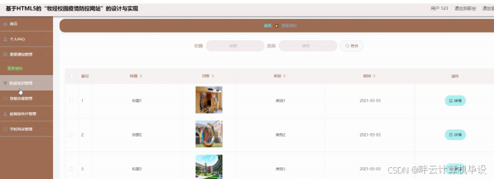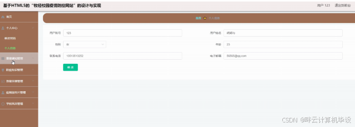 计算机毕业设计ssm基于HTML5的"牧经校园疫情防控网站"的设计与实现v8035标题 (配套有源码 程序 mysql数据库 论文)本套源码可以先看具体功能演示视频领取,文末有联xi 可分享