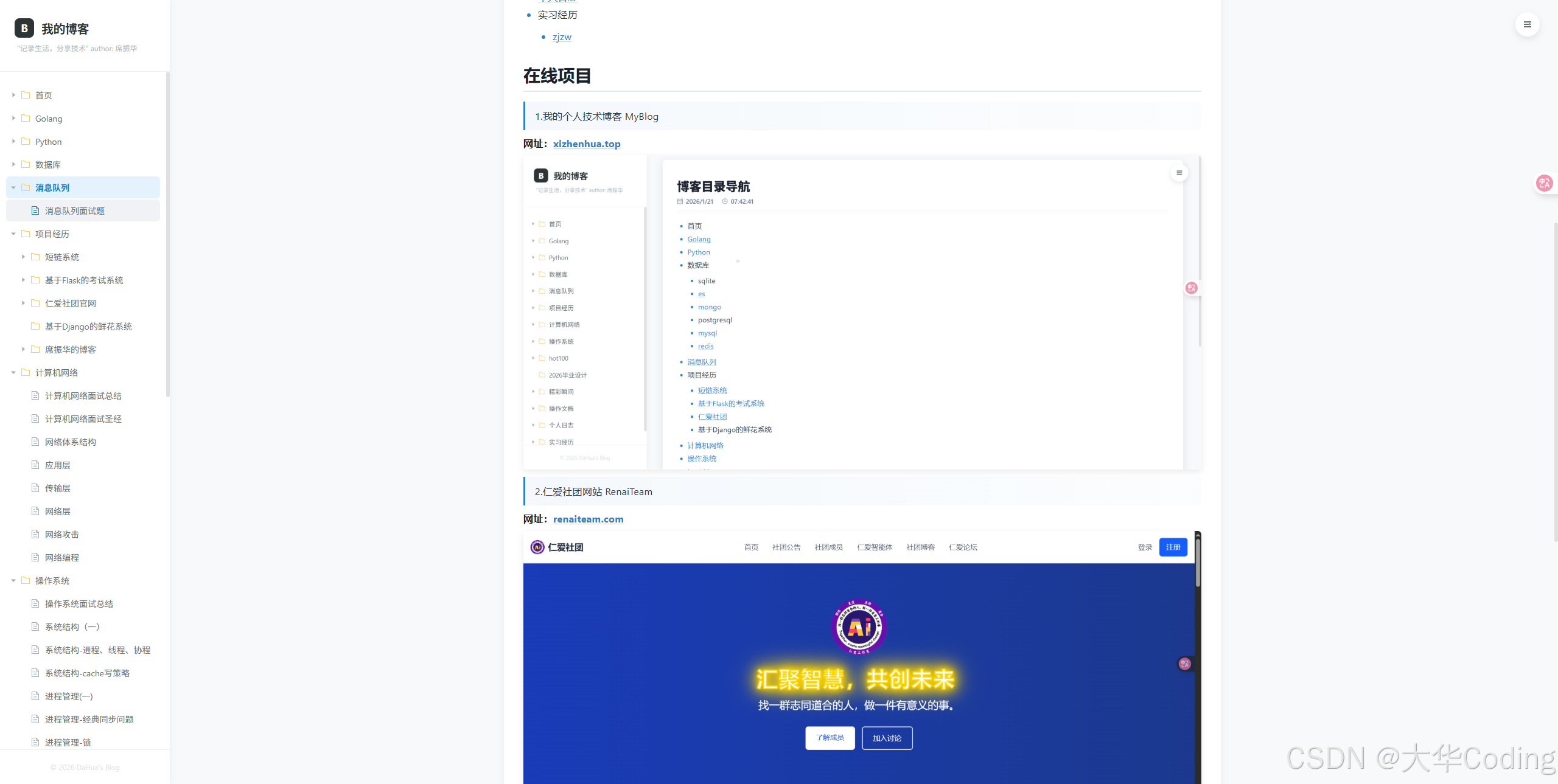- 左右分栏布局:左侧为文章目录列表,右侧为文章内容展示。
