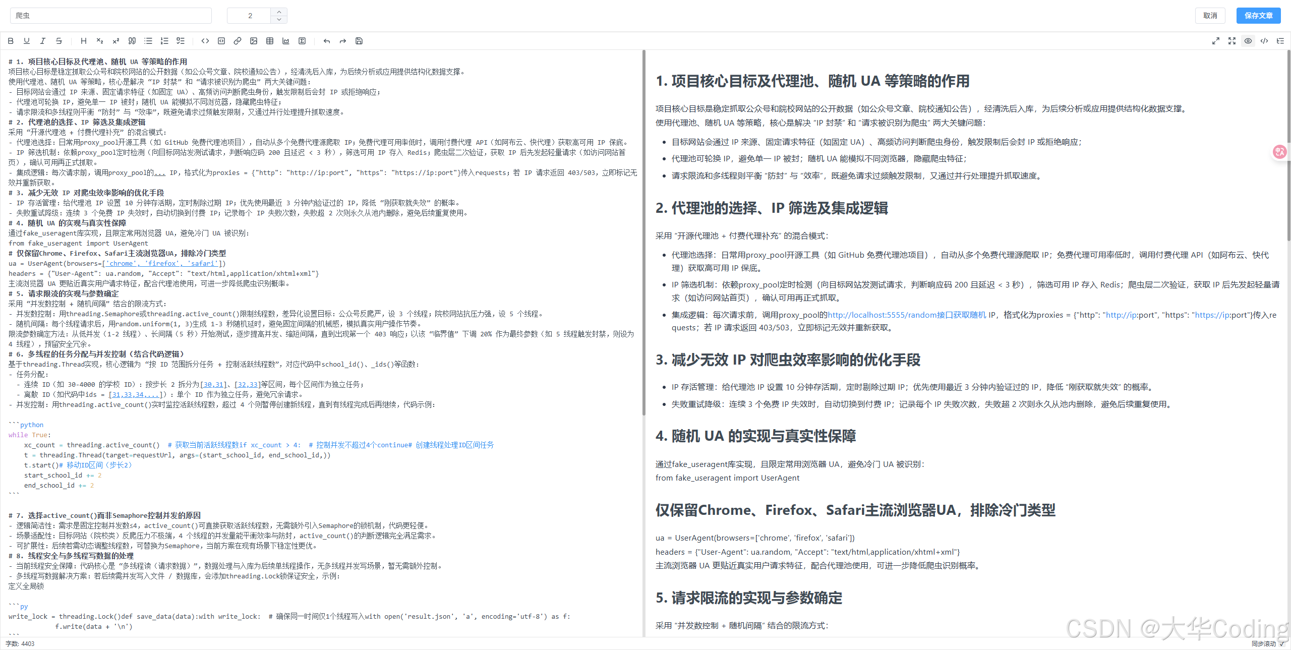 - 在线编辑:集成全功能 Markdown 编辑器,支持实时预览。
