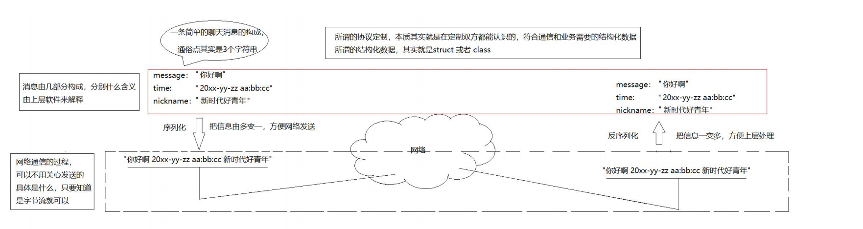 为了让网络传输底层更加简洁,我们配套使用自定义协议下的序列化与反序列化方案