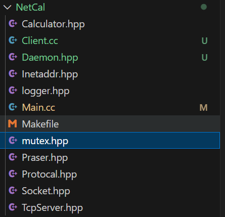 cpp#pragma once #include <string> #include <iostream> #include "Protocal.hpp" class Calculator { public: Calculator() {} Response Exec(Request &rq) { Response resp; switch (rq.Oper()) { case '+': resp.SetResult(rq.X() + rq.Y()); break; case '-': resp.SetResult(rq.X() - rq.Y()); break; case '*': resp.SetResult(rq.X() * rq.Y()); break; case '/': { if (rq.Y() == 0) { resp.SetCode(1); } else { resp.SetResult(rq.X() / rq.Y()); } } break; case '%': { if (rq.Y() == 0) { resp.SetCode(2); } else { resp.SetResult(rq.X() % rq.Y()); } } break; } } ~Calculator() {} private: };主要逻辑: