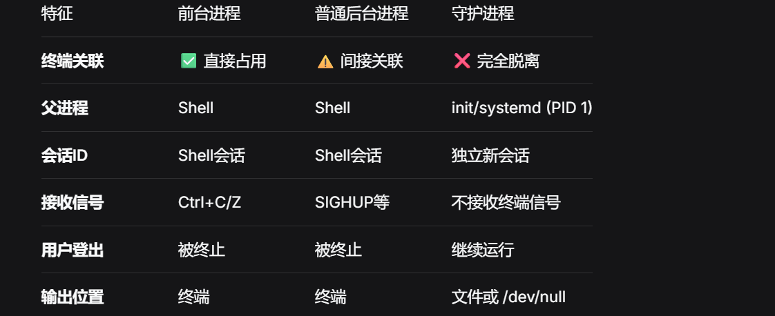举例:当我们用户在登录云服务器的时候,就是启动了一个会话,客户端的shell进程就启动了,然后由会话内的进程组负责完成我们需要完成的任务,但是这种进程会受到用户登录和退出的影响